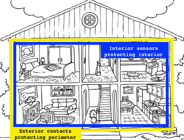 هنگامی که نصاب سیستم امنیتی، دست به طراحی سیستم هشدار می زنند باید لایه های حفاظتی مختلفی را برای ورودی ها در نظر بگیرد. مثلا اتصالات راهرو باید شامل حسگرهای دربها و یا تشخیص دهنده وضعیت پنجره ها (باز یا بسته بودن) باشد. بهترین کار داشتن لایه دوم حفاظتی در وردیهای فرعی یا حتی غیر فعال کردن انشعابات برقی و ورودیها است. با استفاده از حسگرهای تشخیص حرکت در فضای داخلی و بر روی دیواره های فضای خارجی امکان ورود غیر مجاز یا عدم تشخیص ورود غیر مجاز از بین میرود و سطح حفاظتی افزایش می یابد. حسگرهای تشخیصی از نوع تشخیص حرکت یا مگنتهای در و پنجره بعنوان مکمل یکدیگر عمل می کنند و حتی می توانند بجای همدیگر هم مورد استفاده قرار گیرند. استفاده تنها یکی از انواع آنها به این معنی است که یک سارق حرفه ای می تواند بدون هیچ مشکلی سیستم هشدار را از کار بیندازد.