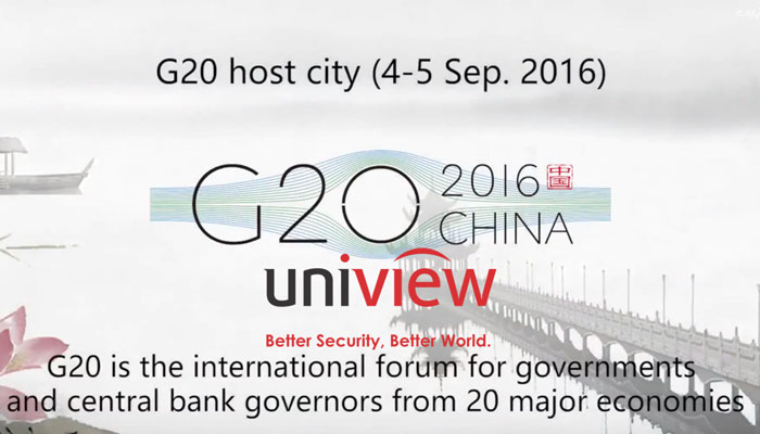 نشست G20 از گردهمایی 20 کشور مهم اقتصادی دنیا شکل می گیرد که امسال نیز در چین و در شهر هانزو بر گزار شد(14 و 15 شهریور ماه 1395). برای برگزاری این نشست یک دوره آماده سازی 210 روزه نیز برای شرکت تامین کننده امنیت و نظارت امنیتی در نظر گرفته شد. در این ایام شرکت یونی ویو برای برگزاری ایمن و نظارت کامل اقدام به نصب بیش از 50 هزار دوربین مدار بسته در شهر هانزو نمود که تنها 1000 عدد آنها بر روی 47 نقطه مهم شهر بیش از 660 هزار نفر را زیر نظر خواهد داشت. این اقدام شرکت یونی ویو کمک می کرد تا در حدود 20 نقطه عبور مرور بسیار مهم و جرم خیز زیر نظر گرفته شود. ضمن اینکه این سیستمهای نظارت تصویری نیز با ذخیره سازهای حرفه ای و VMS های این شرکت پشتیبانی می شوند.